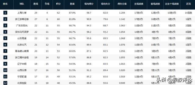 CBA最新排名:上海稳居第一 深圳战绩狂飙 季后赛格局渐渐清晰