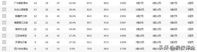 剩下中下游球队当中,第十五名的新疆到第二十名的四川,全部处于连败的状态,特别是四川,天津,江苏基本出局。剩下南京,福建,新疆,吉林,除非是接下来的战绩大幅度好转,否则竞争季后赛大概率只有理论的可能性。