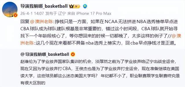 知名篮球评论人“导演我躺那”亦佐证:除非中国篮协未来出台特事特办的特殊政策,否则王俊杰的CBA之路,只能走选秀这一条独木桥。而目前,篮协并无任何释放此类信号的迹象。
