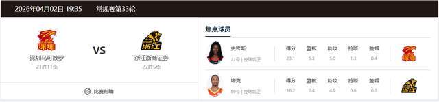 根据赛程,4月2日,还有一场焦点对决,那就是黑马深圳男篮主场迎战卫冕冠军广厦队,此役结果,将影响到排名,看看谁能拿下胜利吧。