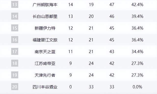 季后赛边缘竞争激烈。北控队以15胜18负守住第12名,成为“季后赛守门员”,广州队14胜19负遭其绝杀后跌至第13,吉林队14胜19负位列第14,形势岌岌可危。新疆队与福建队同为12胜21负,排名15、16位,理论上仍存理论希望,但实际晋级前12的概率已微乎其微。