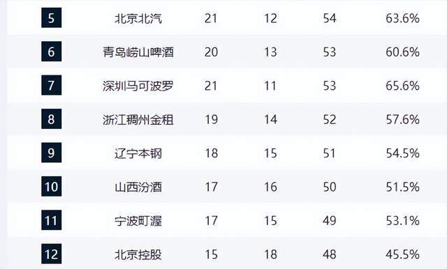 浙江队凭借击败北京的胜利,战绩提升至19胜14负,升至第8位,距离第5名北京队仅差2个胜场,状态正盛,仍有冲击前六的可能。辽宁队轻取新疆队,以18胜15负升至第9名,季后赛门槛进一步逼近。山西队以17胜16负位列第10,宁波队17胜15负紧随其后,形成“9至11名”混战格局。