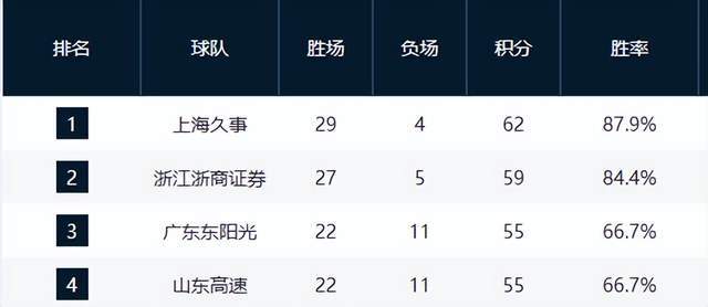 上海广厦领跑,广东第3,山东重回前4,北京输球掉队,辽宁回第9
