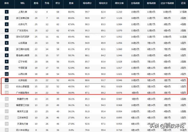 CBA疯狂一夜:上海18连胜,广东+北京造惨案,广厦逆转,排名如下