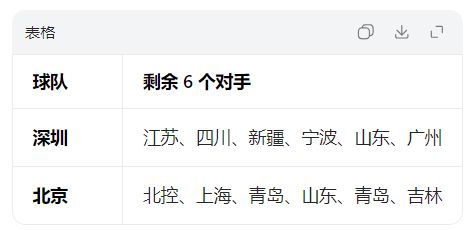 剩余的两个四强席位,大概率会在深圳(第3,25胜)、北京(第4,24胜)、广东(第5,24胜)、山东(第6,23胜)四队中诞生。这就要看他们余下赛程的难度了,谁的简单,谁最终跻身四强的概率就更大。