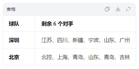深圳最后六个对手:江苏、四川、新疆、宁波、山东、广州