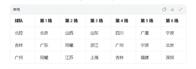 广东:吉林、广厦、宁波、福建、山西、福建