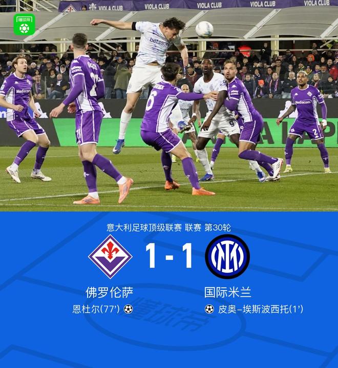 北京时间3月23日3:45,意甲第30轮继续进行,国际米兰做客弗兰基球场挑战佛罗伦萨,本场主裁判为安德烈亚-科隆博。上半场,皮奥头槌闪击,莫伊塞-基恩错失良机。下半场,恩杜尔补射救主。最终,国米1-1佛罗伦萨,遭遇联赛三轮不胜。