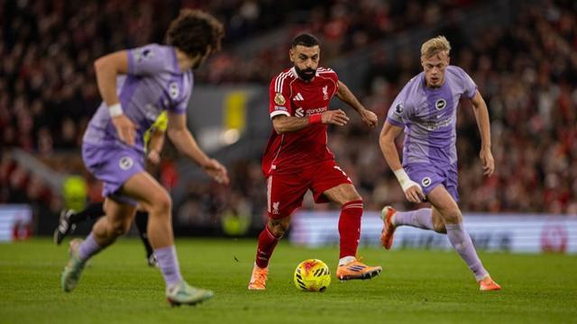 利物浦队球员萨拉赫(中)在比赛中 新华社发