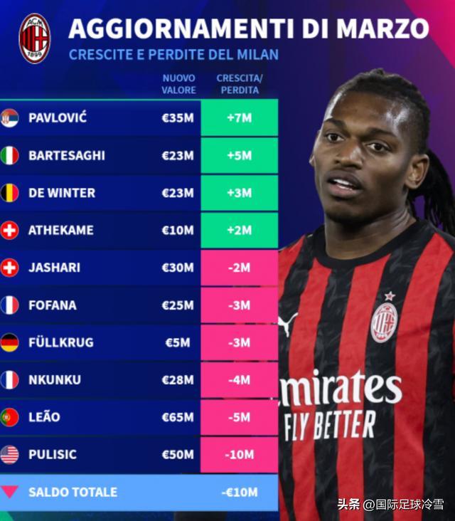 国米的身价下滑总值,比尤文图斯(下滑1600万)和AC米兰(下滑1000万)都高出很多,这引发了热议。