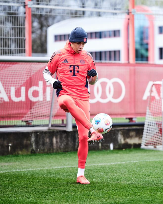 拜仁官方发布消息,此前因脚踝出现疼痛反应的穆西亚拉于当地时间今天上午进行了个人的有球训练课。