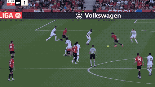 第42分钟,马略卡一次简单的进攻就撕开防线,莫拉内斯停球、转身、爆射一气呵成,皇马0-1落后,仅此一次机会,主队就以1球领先进入中场休息。
