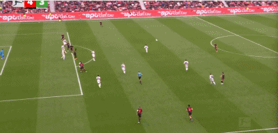 第73分钟,易卜拉欣-马扎推射得分,勒沃库森5-3沃尔夫斯堡