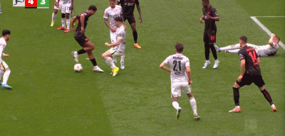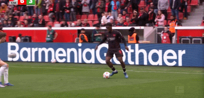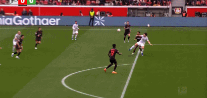 第90+6分钟,打疯了,马里克-蒂尔曼轻松得分,勒沃库森6-3