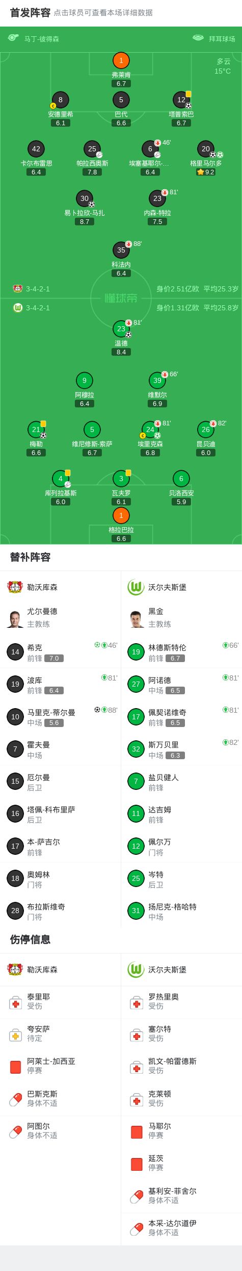 第16分钟,率先得分,温德禁区内破门,沃尔夫斯堡1-0领先