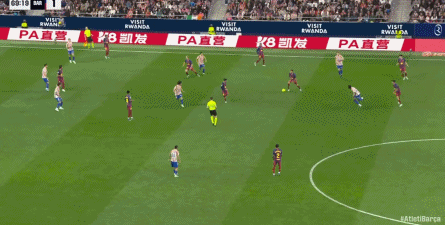 第32分钟,格列兹曼铲倒佩德里,被主裁判口头警告