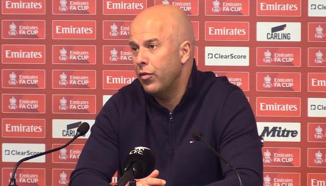 足总杯1/4决赛,利物浦客场0-4不敌曼城,赛后,红军主帅斯洛特出席新闻发布会接受媒体提问。