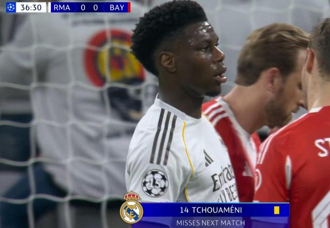 在面对奥利塞的高速前插时,楚阿梅尼放倒了对手,这也让这位法国后腰吃到黄牌。这是楚阿梅尼本赛季在欧冠赛场中吃到的第3张黄牌,依照欧冠规则,楚阿梅尼将因为累积3张黄牌而缺席次回合的比赛。目前,皇家马德里暂时0-1落后于拜仁。