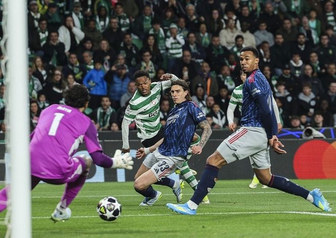 上半场刚开场6分钟,葡萄牙体育就差点闪击破门,阿劳霍接到长传获得单刀,一脚爆射击中横梁弹出,阿森纳逃过一劫。