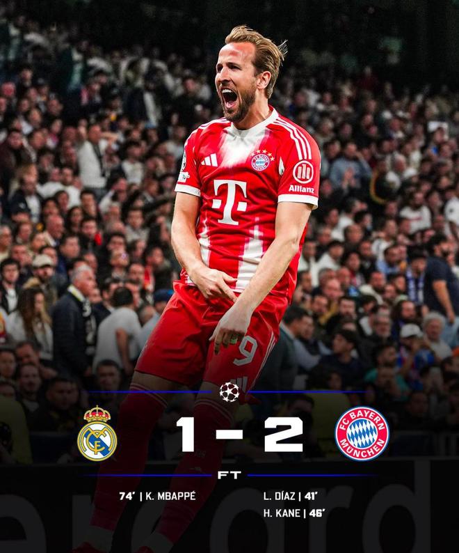 易边再战,仅仅开打3分钟,皇马再次中场失误,拜仁反击如同教科书般流畅。皮球来到凯恩脚下,一脚弧顶爆射直挂死角,拜仁2-0皇马,比分被拉开,比赛的气势彻底倾向客队。