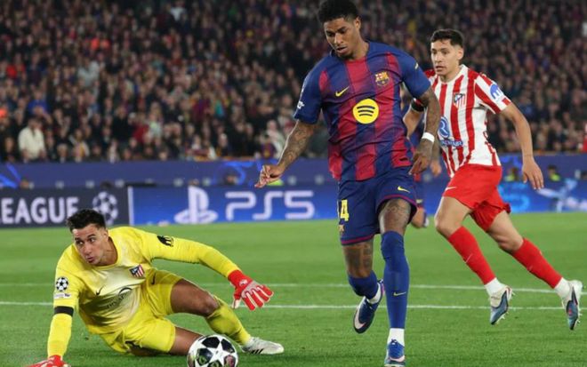 这场4天前刚在联赛碰面、巴萨2-1取胜的对决,在欧冠赛场画风突变——马竞客场2-0完胜,红牌、任意球世界波、核心前锋低迷等剧情扎堆,直接把巴萨逼到悬崖边,马竞则一只脚迈进欧冠4强。