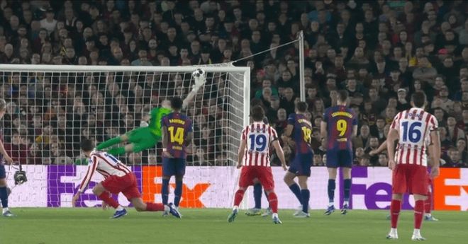 马竞最近啥状态?联赛三连败,但欧战是真猛!近34场欧战没0-0,场均3.94球,这火力,巴萨后防直接被炸穿!阿尔瓦雷斯,这哥们儿今晚就是诺坎普的“大魔王”——第45分钟,任意球直接轰进死角,世界波!这脚球,霍安·加西亚连扑救动作都没做出来,直接懵圈!