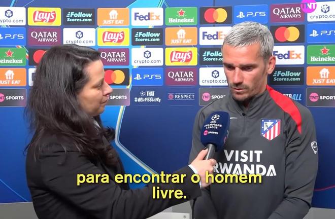 欧冠1/4决赛首回合,马竞客场2-0战胜巴萨,格列兹曼赛后接受了TNT体育巴西频道的采访。