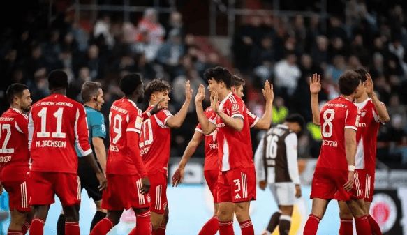 另一边卫冕冠军拜仁慕尼黑主场火力全开,5-0 血洗弱旅圣保利,继续把分差拉到离谱的 12 分。