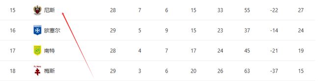 根据法甲的降级规则:倒数第三需要与法乙第三打附加赛,一旦失利,同样降级。而尼斯如今仅有微弱优势,一场直接对话,就可能决定命运。目前他们积27分,排在倒数第四,仅仅比倒数第三的欧塞尔多3分,随时都有可能去打附加赛。换句话说,他们的危险,是“慢性死亡”。