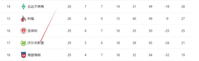 这支曾在2009年奇迹夺冠的球队,自1997年升入德甲后,从未降级,是联赛中的“常青树”。但本赛季,他们的防线彻底崩塌,失球数位列联赛最差之列。进入下半程后长期不胜,让他们直接滑入降级区。即便换帅,也未能止血。目前狼堡积21分,排在倒数第二,比倒数第三的圣保利少4分(降级附加赛的名额)。倒数第四科降27分、第五的云达不来梅28分,并且这两支球队都少赛一场。目前距离安全区差6分,29年的德甲连续征战纪录,正处在断裂边缘。
